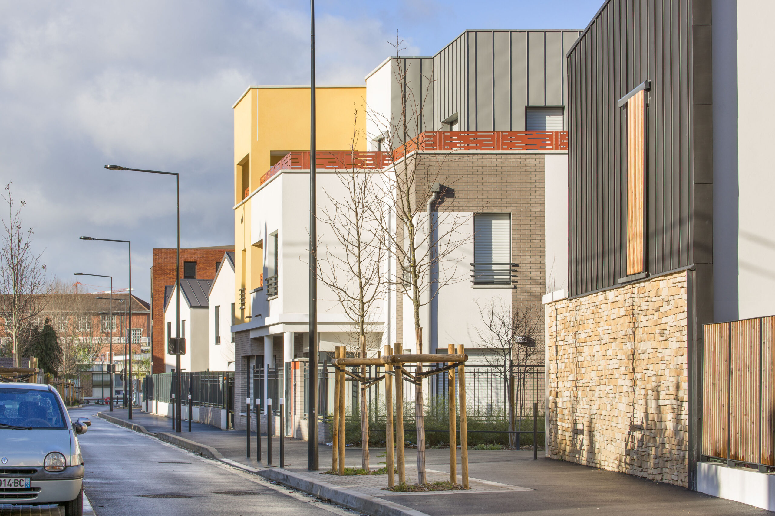 Situé sur la ZAC Bel Air à Saint-Denis, ce projet conçu pour l’Association Foncière Logement apporte une transition douce entre le quartier pavillonnaire voisin et le quartier collectif créé dans la ZAC.